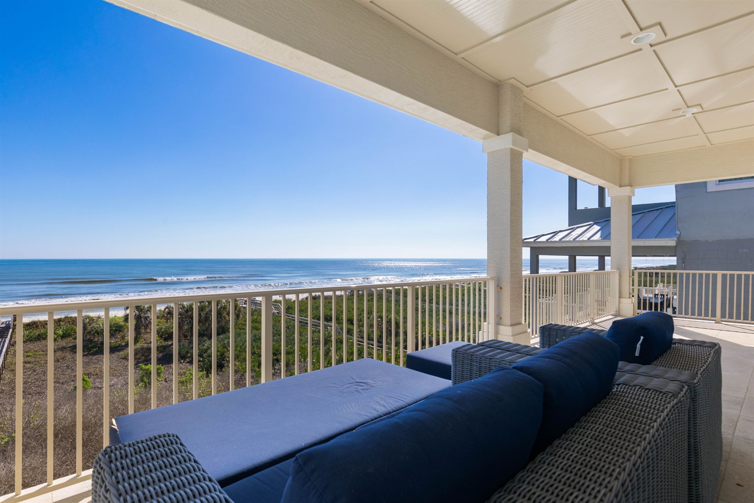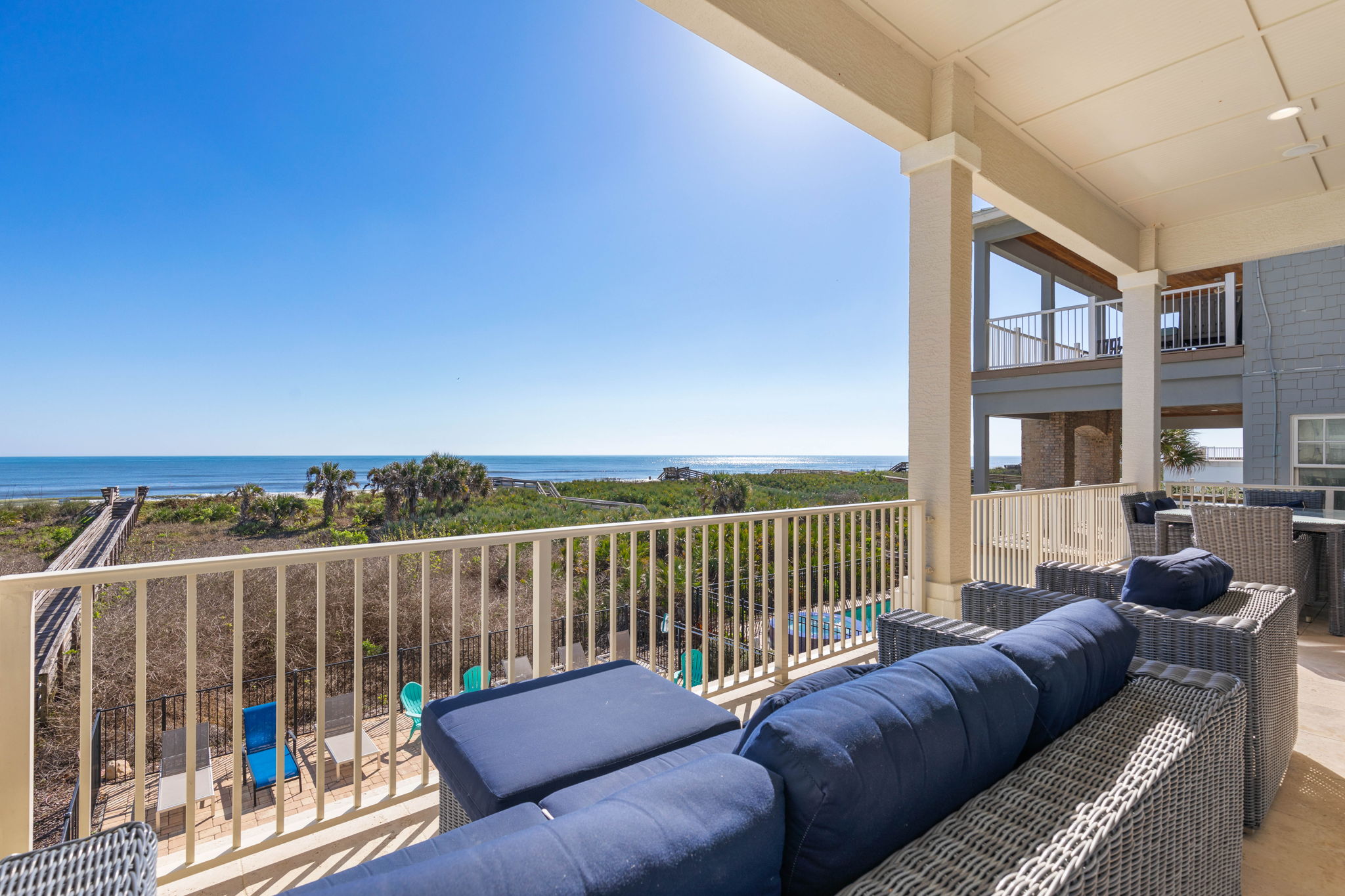 • Direct oceanfront location with a private boardwalk providing easy access from the home to the beach.