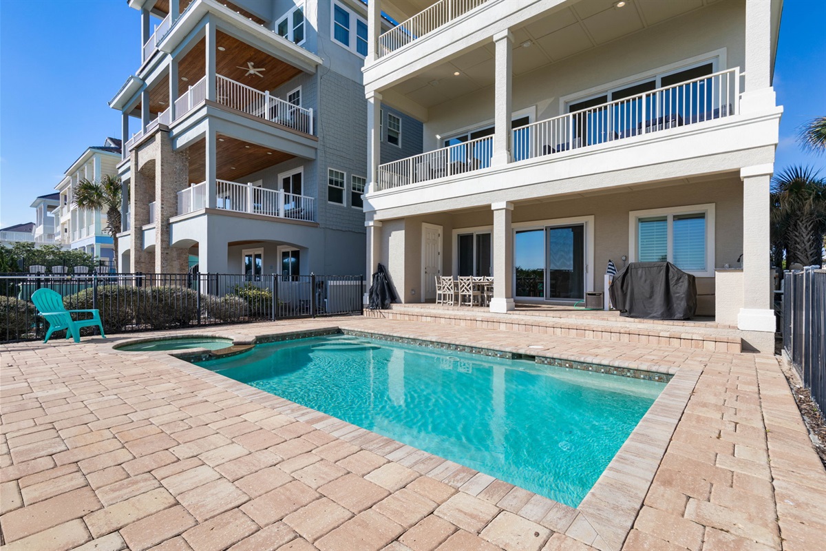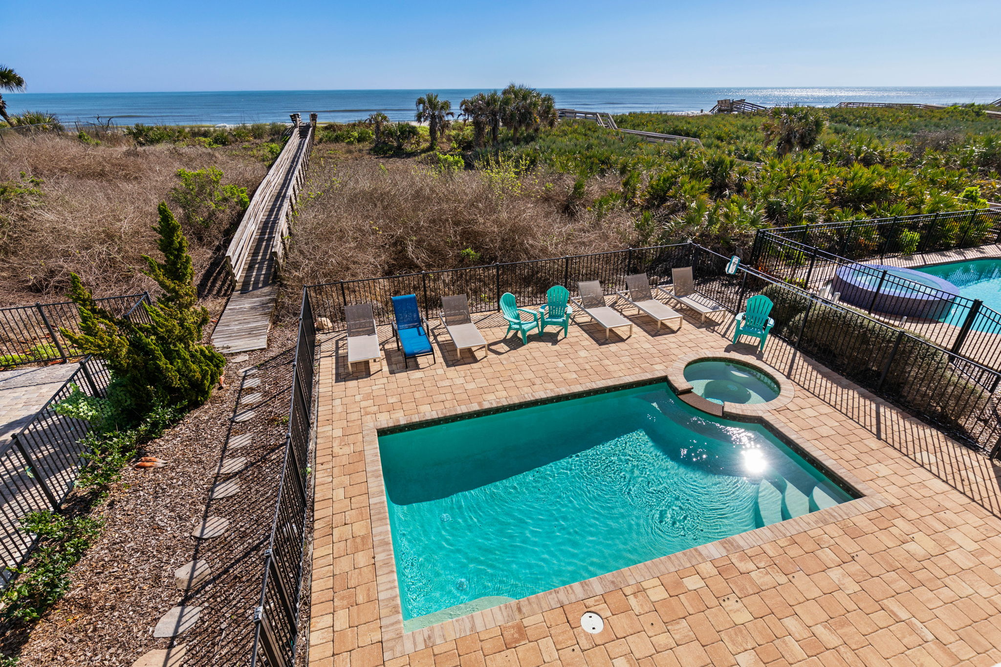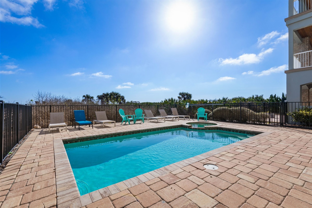 • Private heated pool and spa overlooking the ocean for relaxing after a day at the beach.