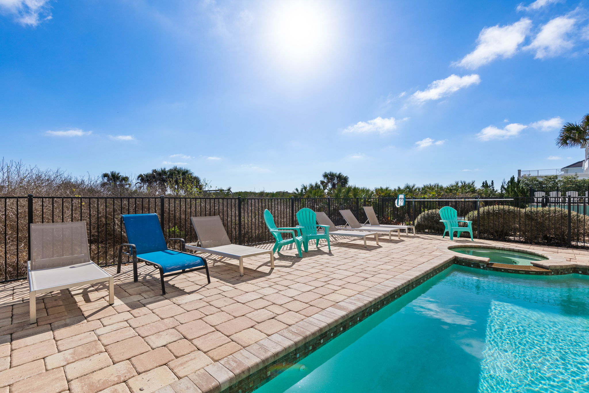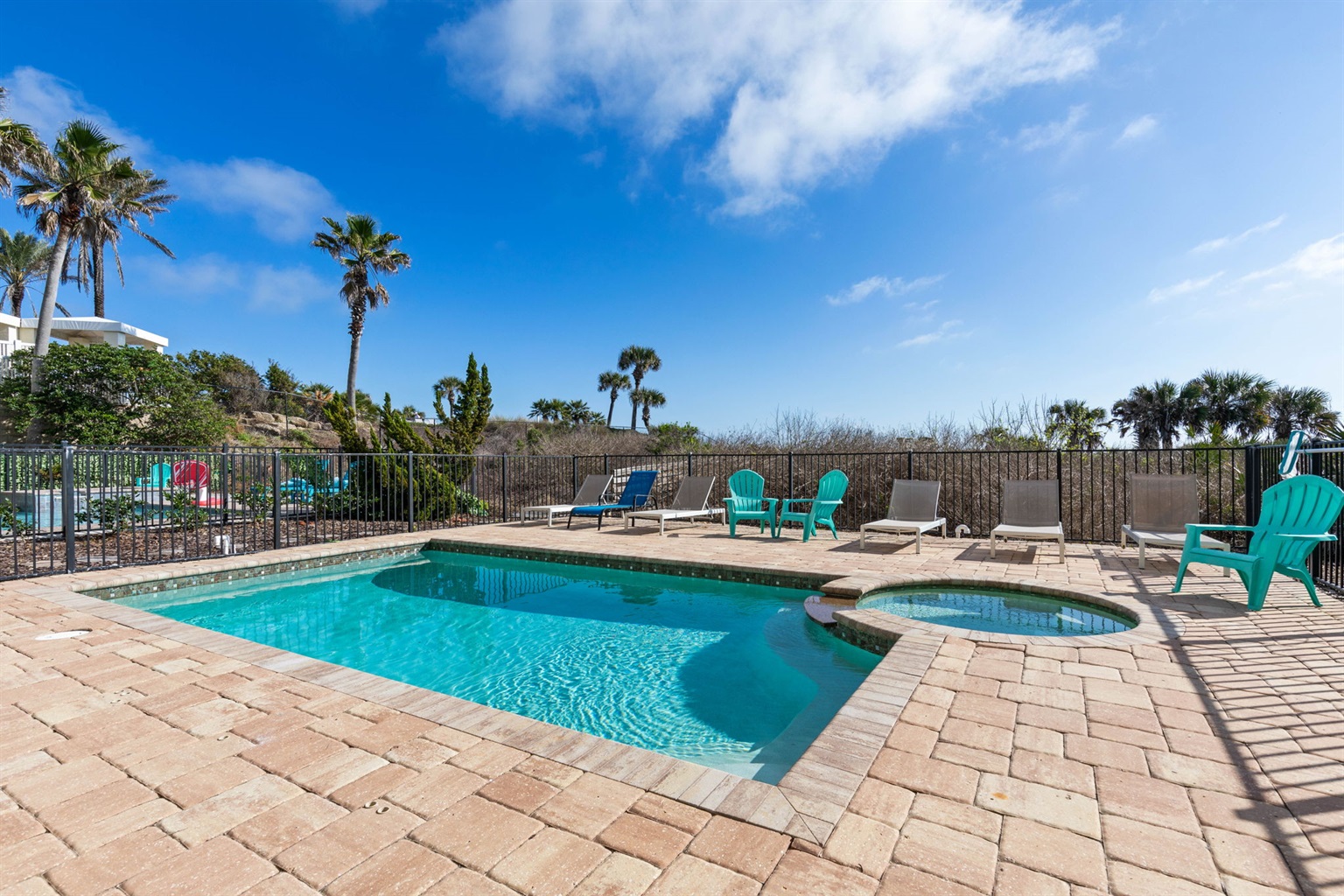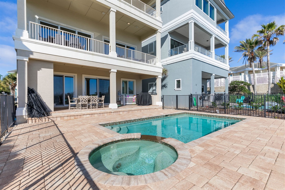 • Private heated pool and spa overlooking the ocean for relaxing after a day at the beach.
