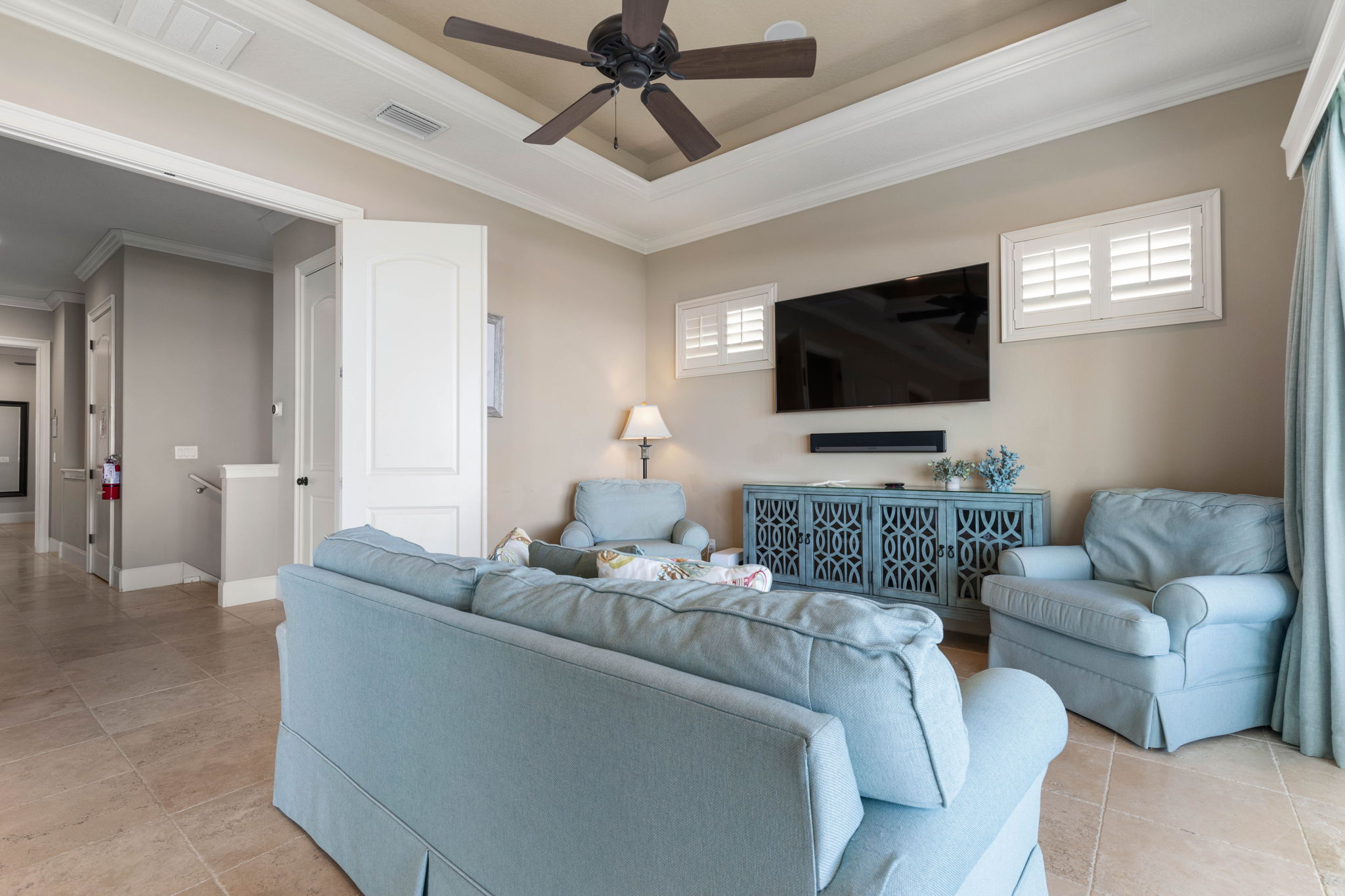 With multiple gathering areas throughout the home, guests can easily spread out or come together for movie nights, games, and conversation.