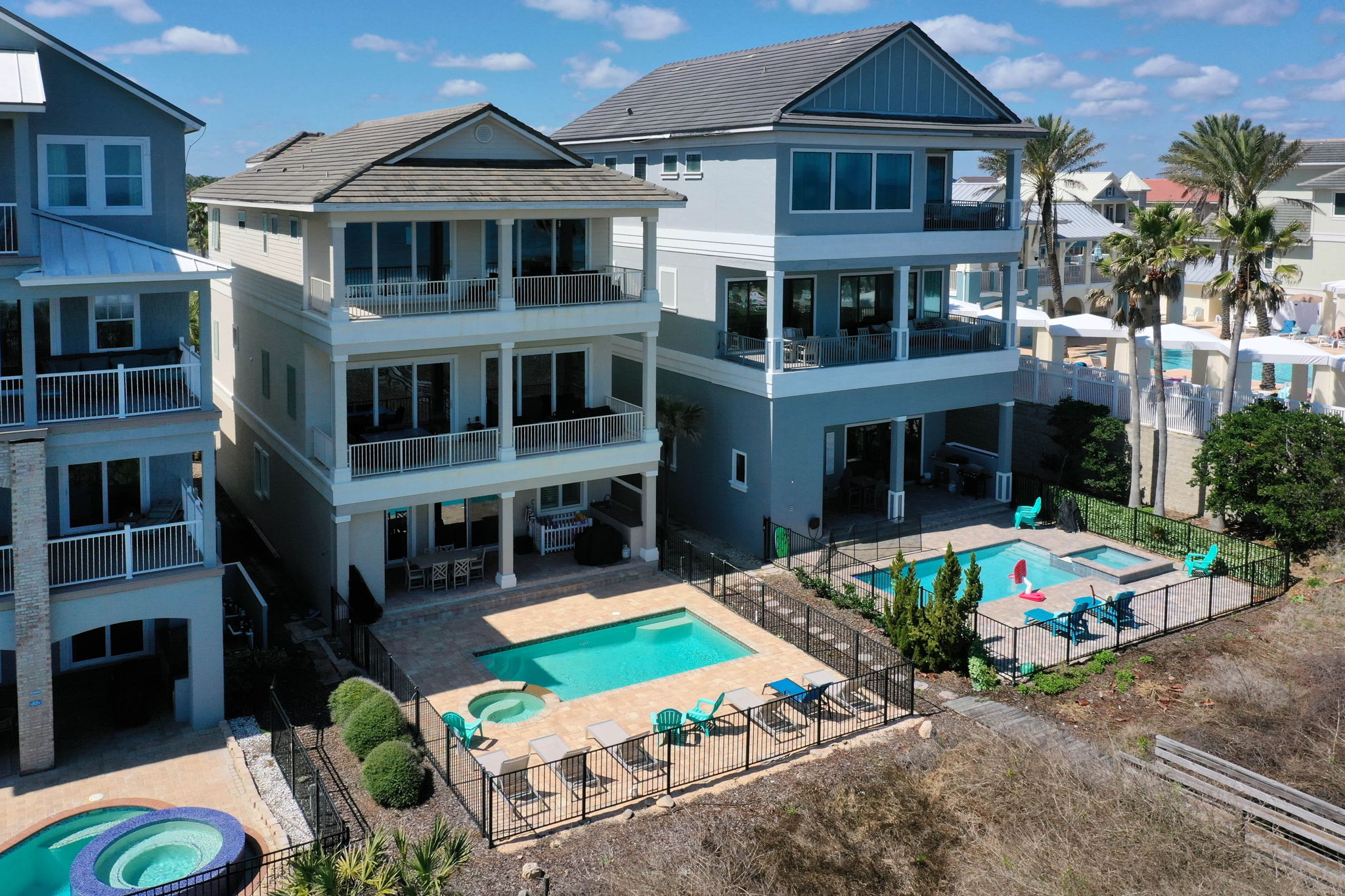 Guests staying at Tiki Tides also enjoy access to the resort-style amenities located just across the street within the Cinnamon Beach community.
