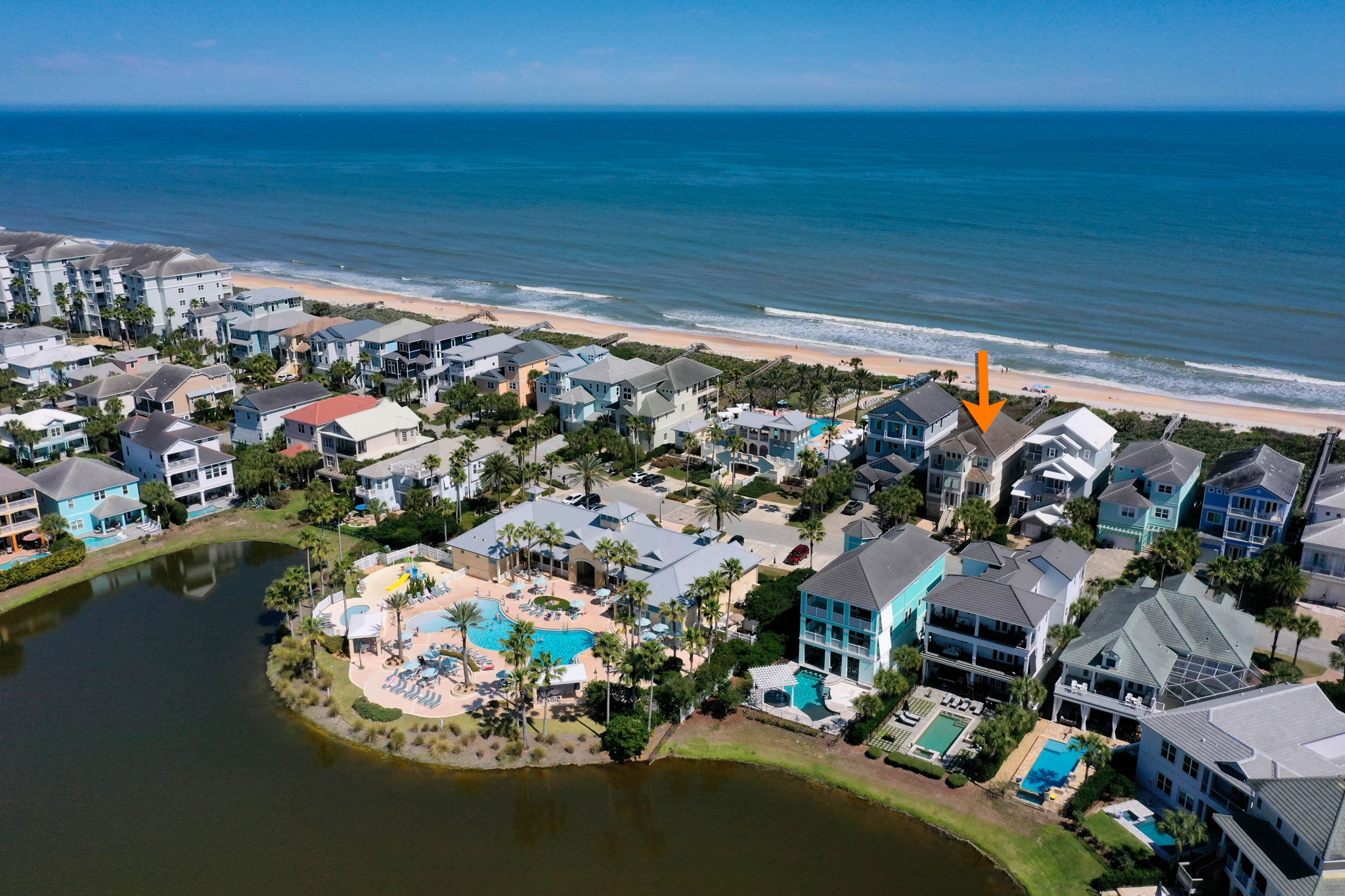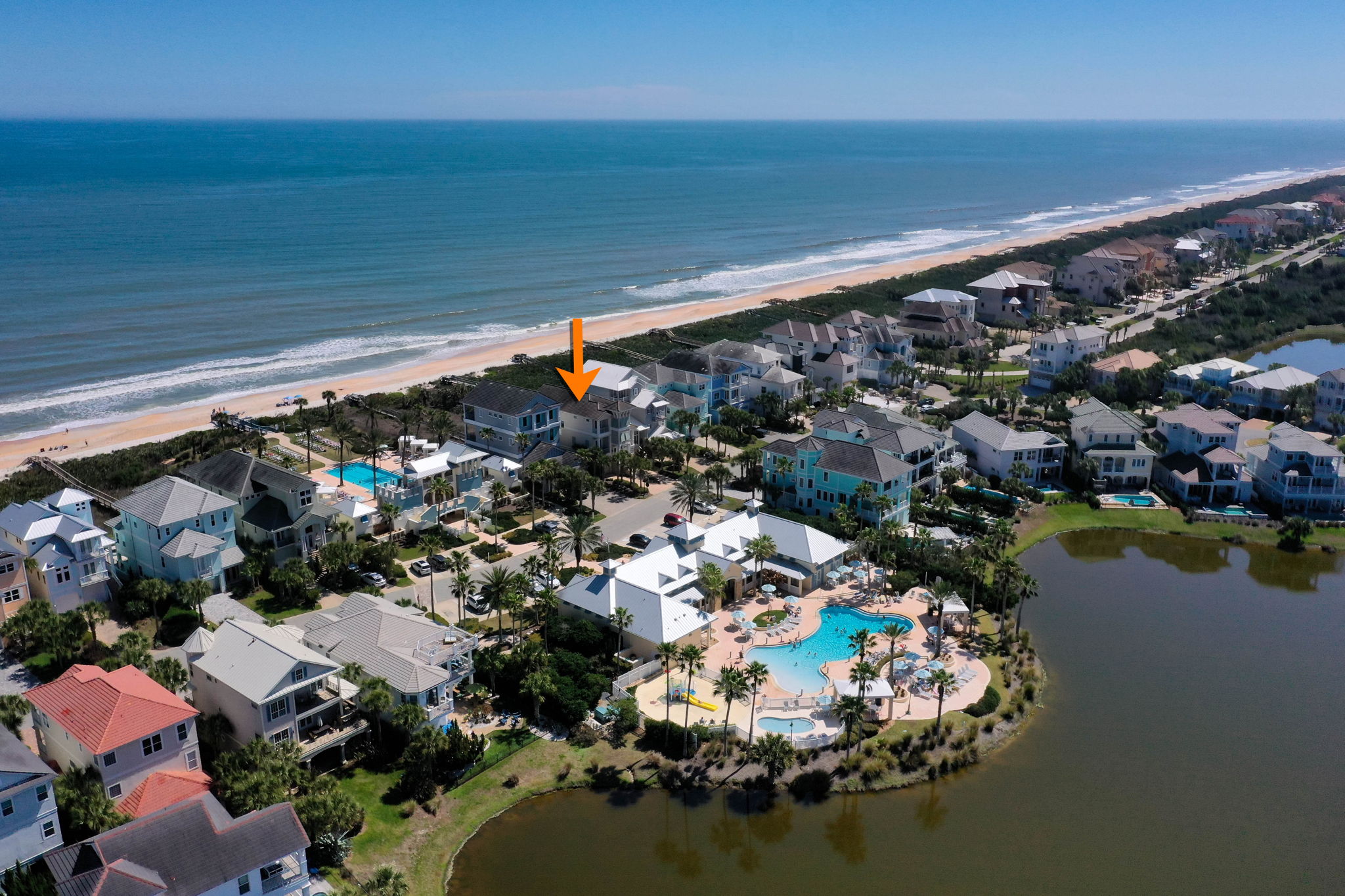 Guests have full private access to the home, including the pool, spa, balconies, and private beach boardwalk. Guests also have access to Cinnamon Beach community amenities including the oceanfront pool, lakeside family pool with splash pad, clubhouse, fitness center, and game room.
