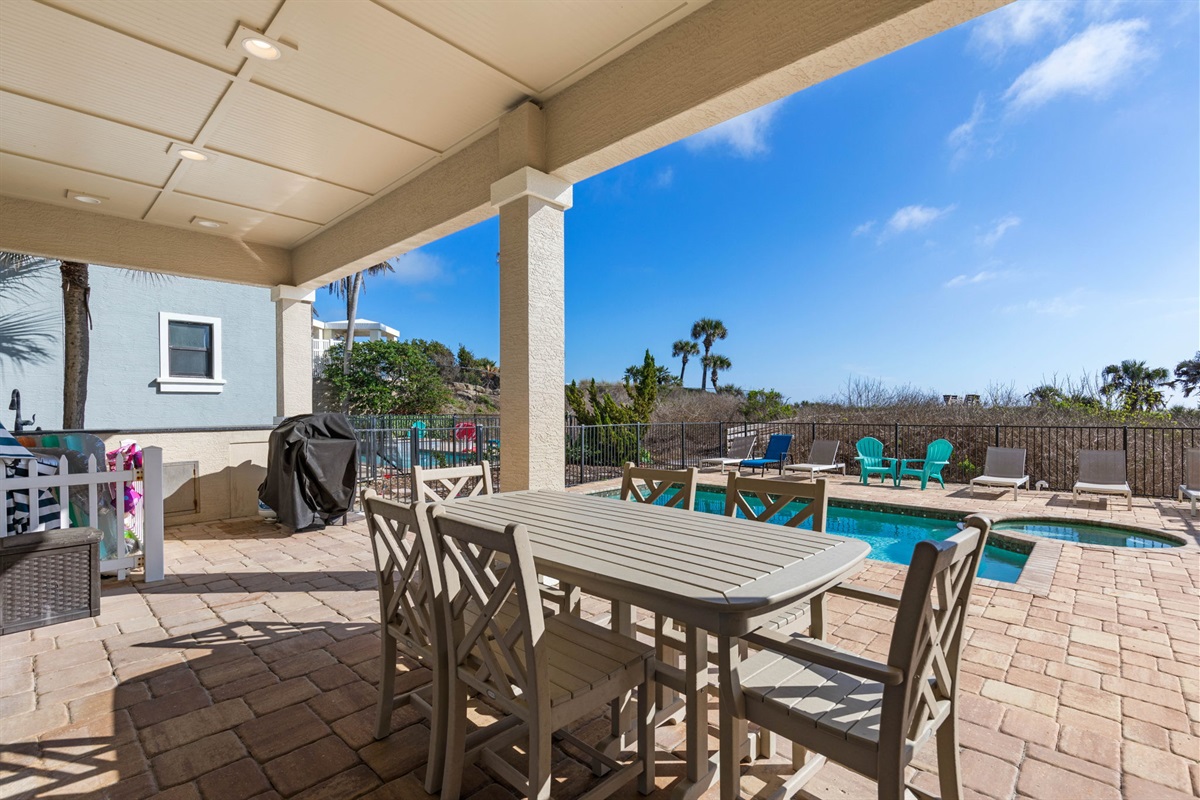 Step outside to enjoy the private heated pool and spa overlooking the beach. Relax in the sun, fire up the propane grill, or unwind in the spa while listening to the sound of the waves.