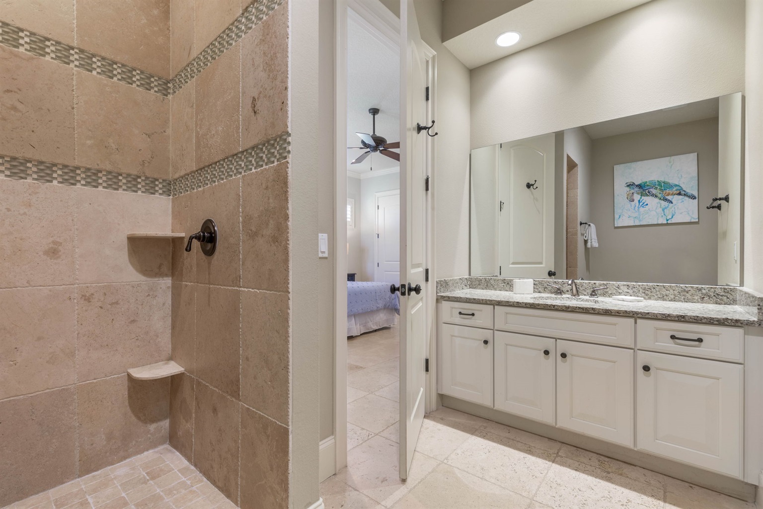• Bedrooms 1 and 2 share a Jack-and-Jill bathroom.