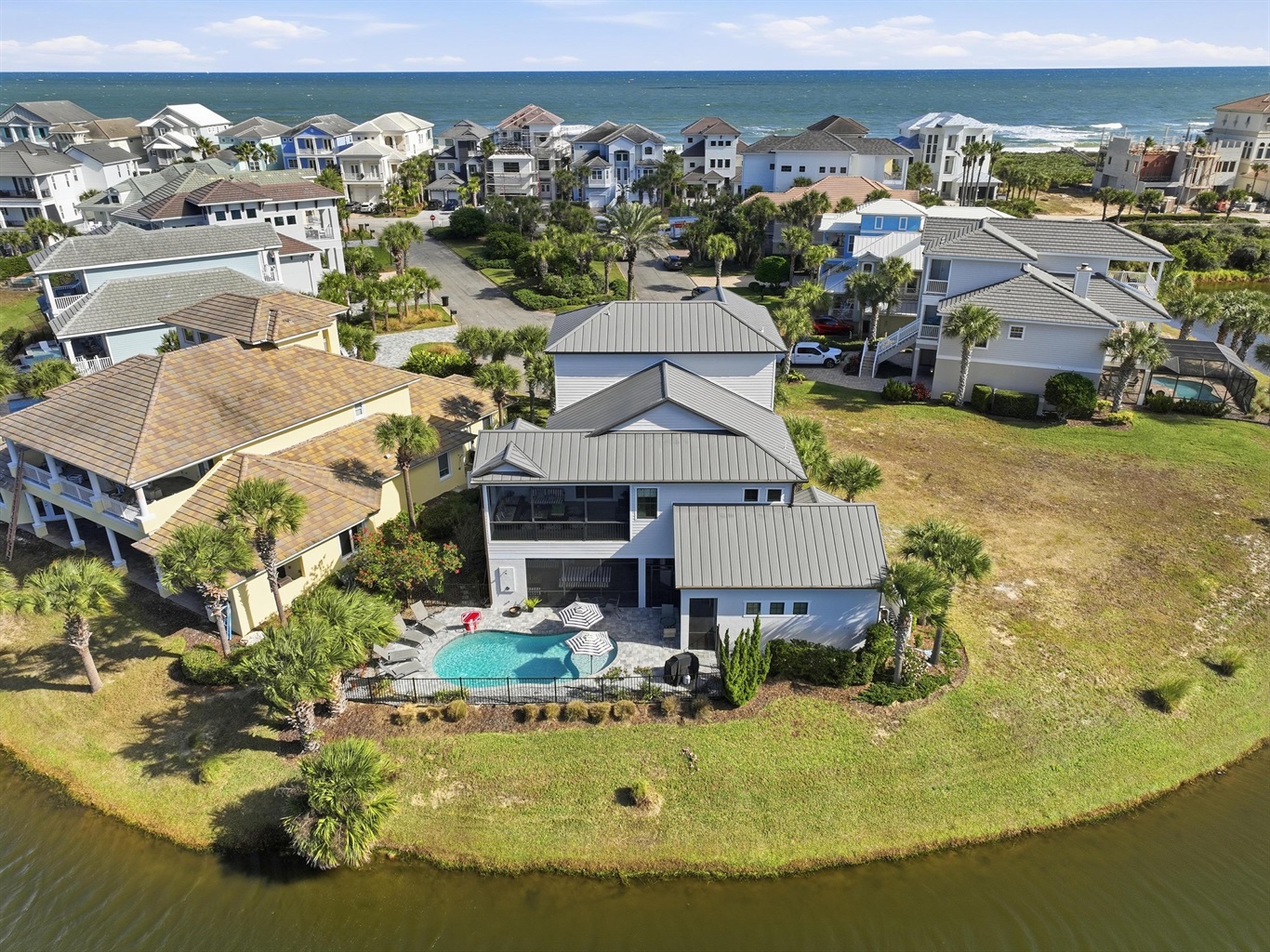 Double Screened-in Porches: Choose between the screened porch with sunset lake views or the balcony facing the ocean.