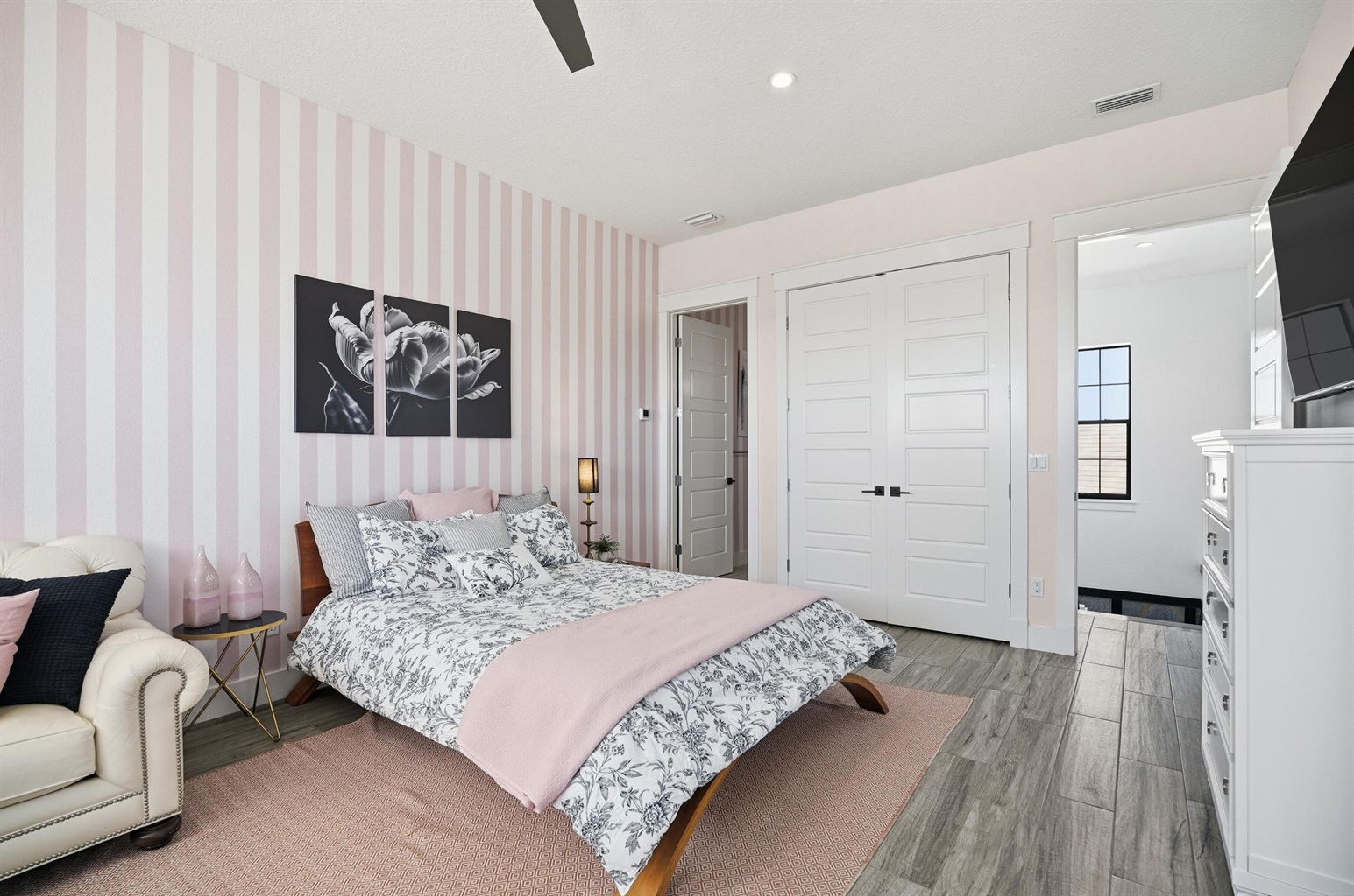 King Suite: Large bedroom with a private full bathroom.