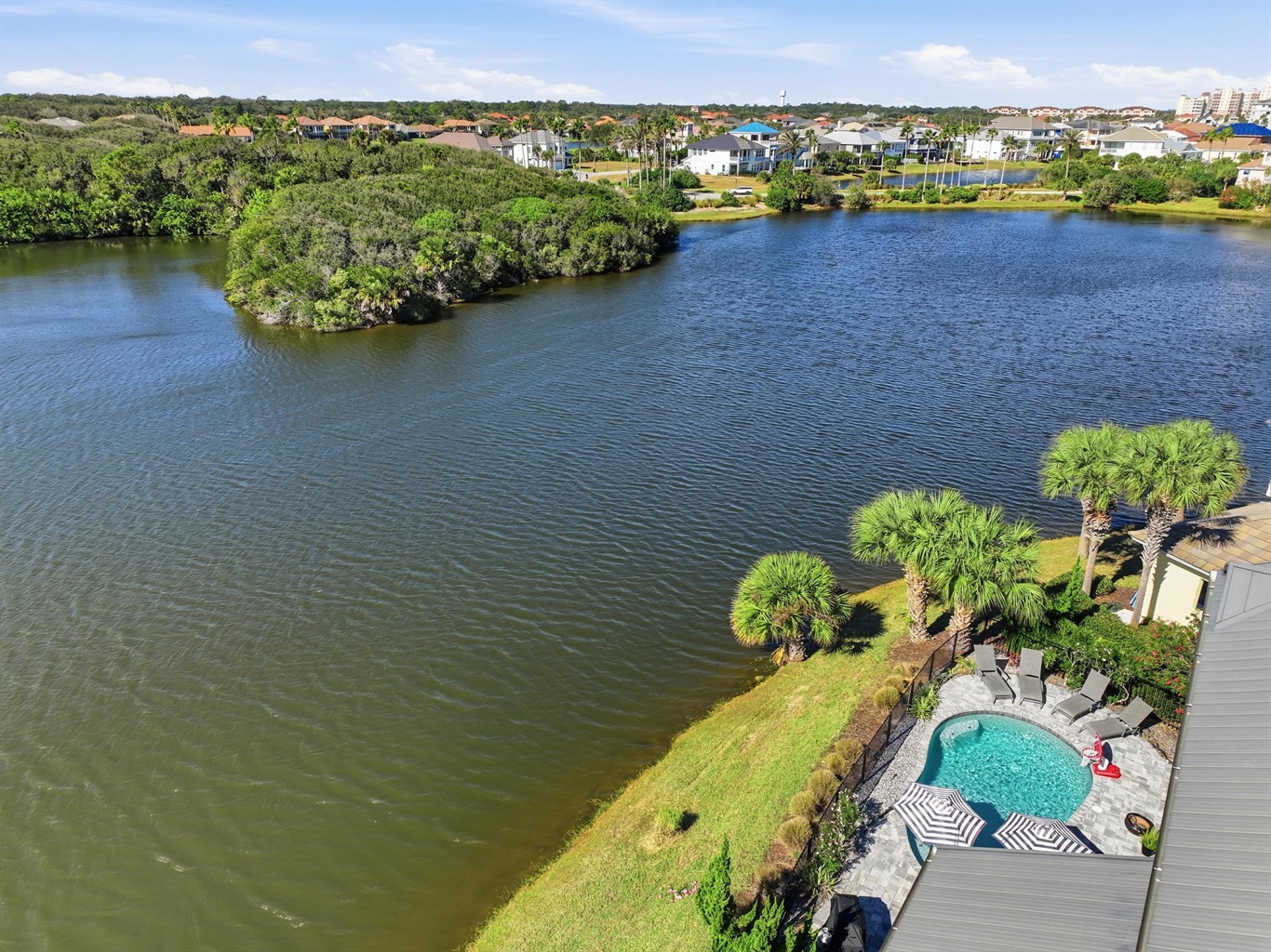 Primary Suite (1st Floor): A King suite with an en-suite bath and direct pool access—perfect for those who prefer to avoid stairs.